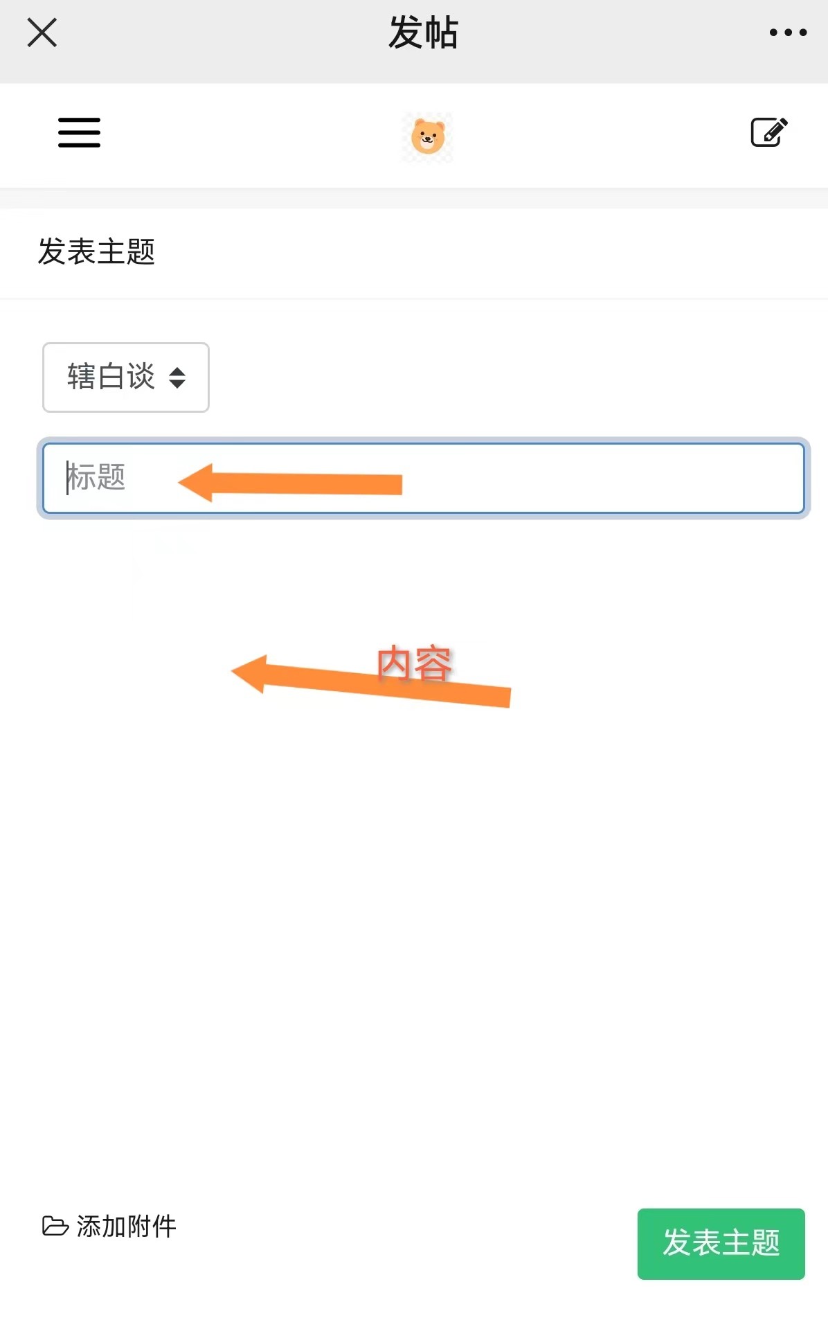 第三步,编辑主题,填写标题和内容,点击发表主题。